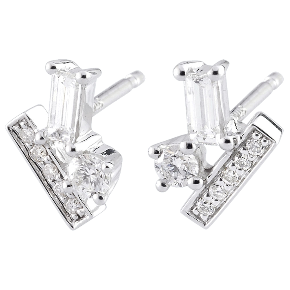 FRESCURA N.º 13Pendientes cortos - Oro blanco 18 quilates - Diamante ID : 1348