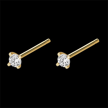 El brillo y la frescura de un par de pulgas de diamantes sobre oro amarillo. Para acompañarlos con otros motivos o para combinar sin moderación.