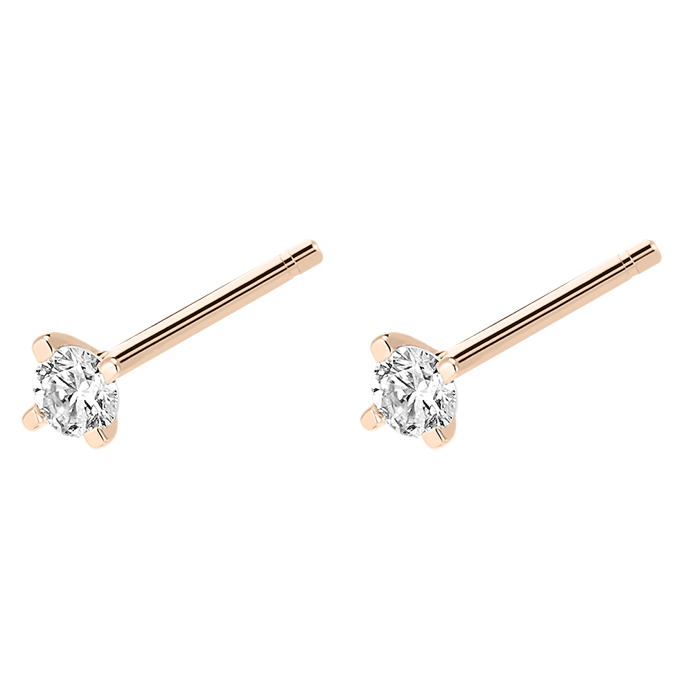 El brillo y la frescura de un par de pulgas de diamantes sobre oro rosa. Para acompañarlos con otros motivos o para combinar sin moderación.