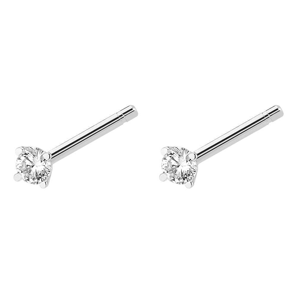 2 diamantes: 0.06 quilates - Oro blanco (9 quilates= 375/1000): 0.6 g.