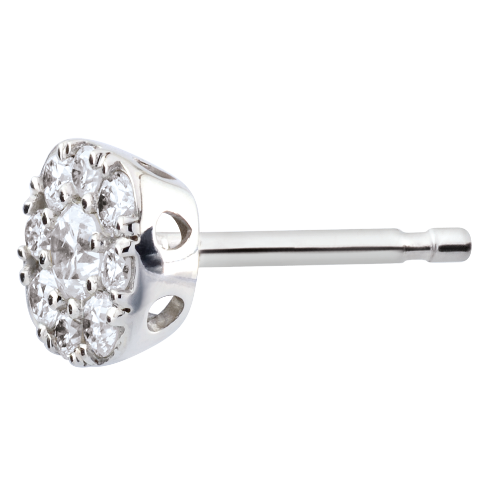 18 diamantes: 0.3 quilates - Oro blanco (9 quilates= 375/1000): 0.8 g.