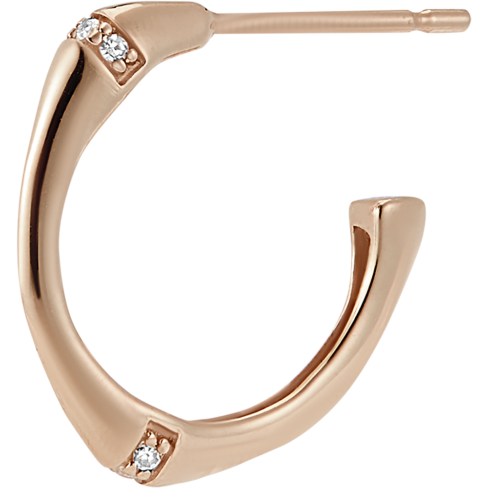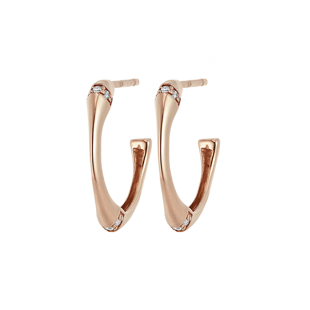 Pendientes en forma de aro Jungla Sagrada, pequeños, diseño multidiamante - oro rosa de 18 quilates. Una rama de bambú fuerte y