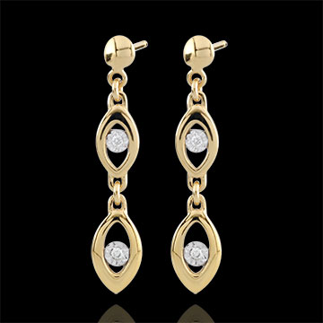 Pendientes Encanto Pavo Real - dos oros - oro blanco y oro amarillo 18 quilates