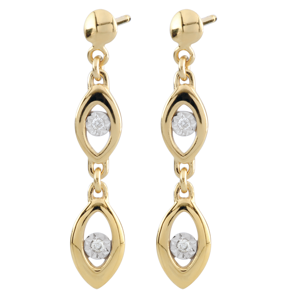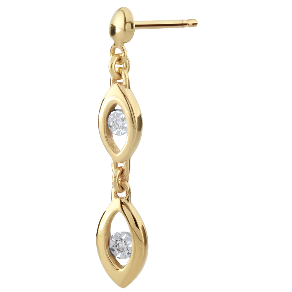Dúo doble de marquesitas con oro, encierran un diamante en cada uno de los pendientes.