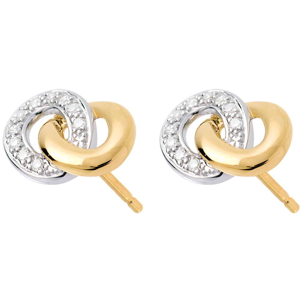 Réplica de un motivo cadenea aspa, compuesta de anillos de oro amarillo y de oro blanco con diamantes enlazados.