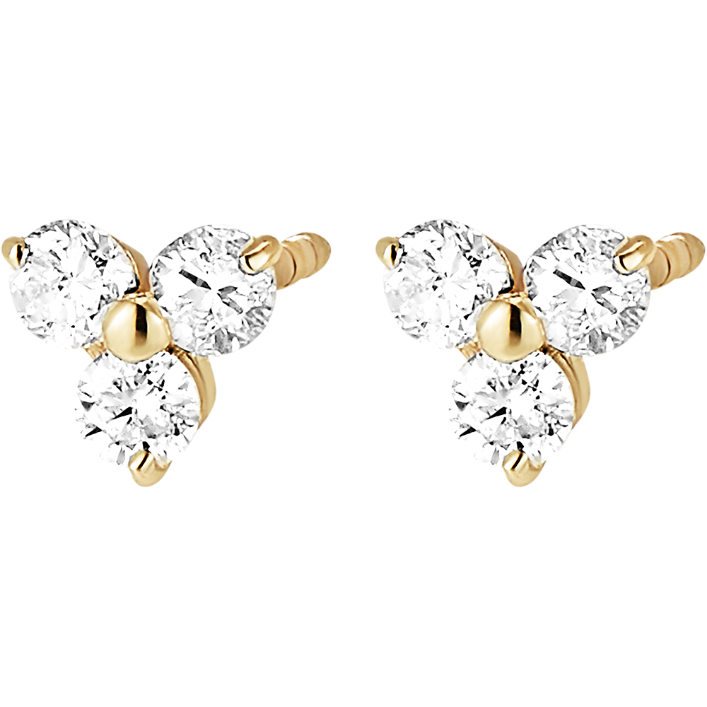 Un par de pendientes de oro amarillo adornados con 3 diamantes. Delicado y brillante, este modelo es perfecto para llevar a diario.