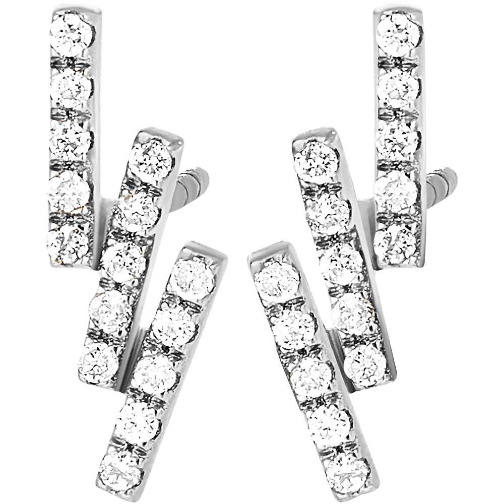 Un par de pendientes de oro blanco adornados con 30 diamantes que parecen fuegos artificiales. Un modelo moderno y atemporal a la vez.