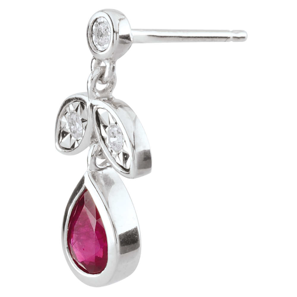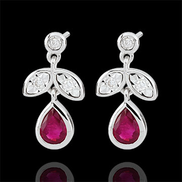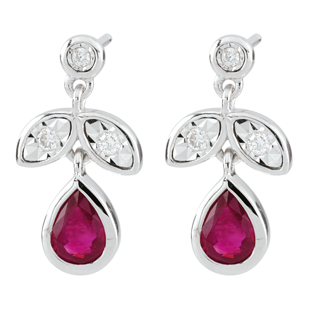 AVES DEL PARAíSO N.º 22Pendientes Hojas - Oro blanco 9 quilates - Rubí ID : 2423 4.6