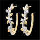 Hojas de oro amarillo brillantes y hojas de oro de acabado rugoso hechas a mano se alternan para pendientes de aro con 6 diamantes.