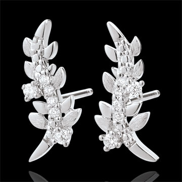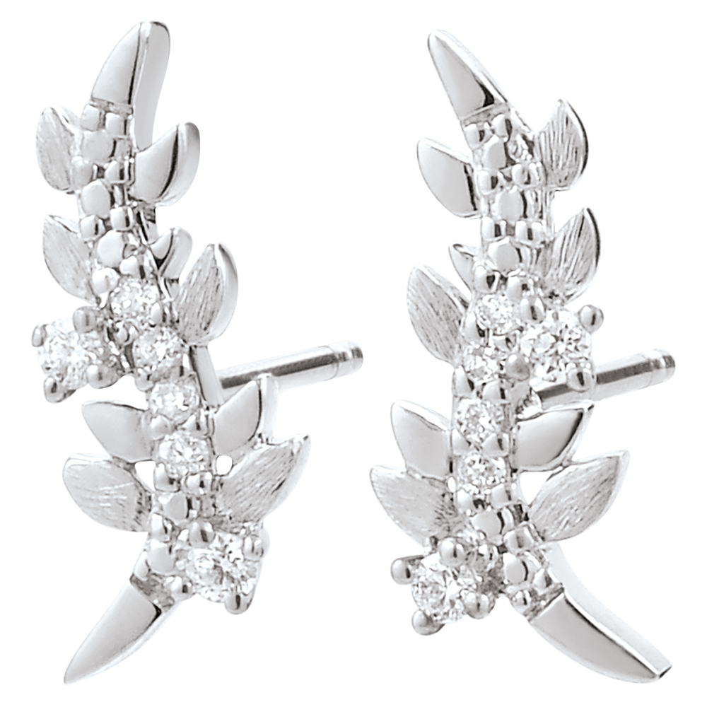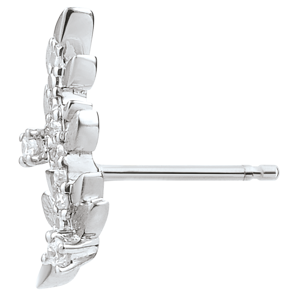 Hojas de oro blanco brillantes y hojas de oro de acabado rugoso hechas a mano se alternan para crear unos pendientes románticos con 12 diamantes.