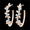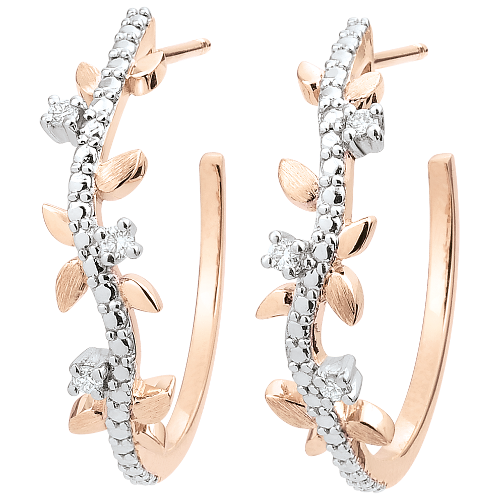 Hojas de oro rosa brillantes y hojas de oro de acabado rugoso hechas a mano se alternan para crear pendientes de aro con 6 diamantes.