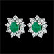 En cada pendiente una esmeralda oval es el centro de una margarita de oro blanco acompañada por pétalos hechos de diamantes.