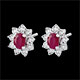 En cada pendiente un rubí oval es el centro de una margarita de oro blanco que tiene los pétalos hechos de diamantes.