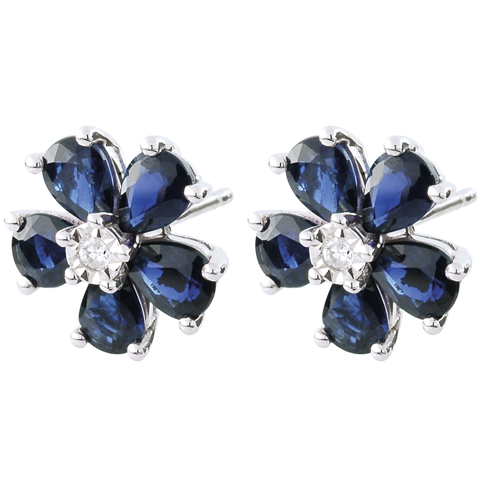 AVES DEL PARAíSO N.º 31Pendientes cortos Flores - Oro blanco 9 quilates - Zafiro azul ID : 2465 5