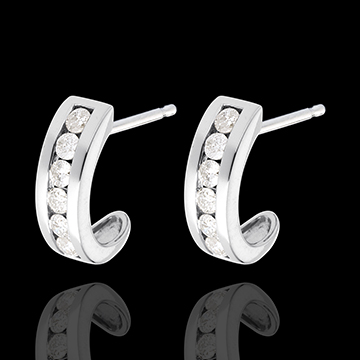 Pendientes media luna empedrado oro blanco - 0.41 quilates - 12 diamantes