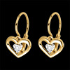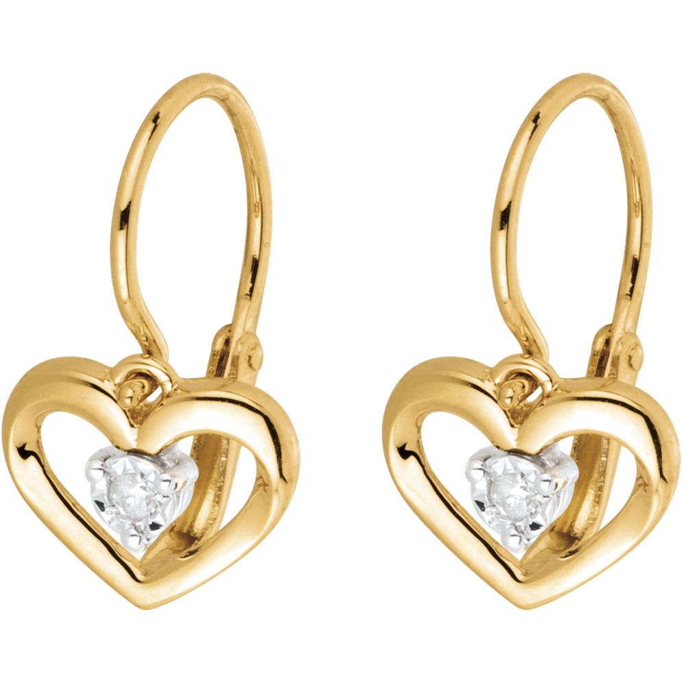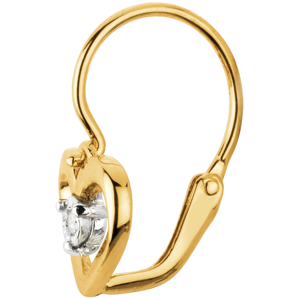 Un diamante enrollado en un pequeño corazón de finura para cada uno de sus pendientes de oro amarillos. Modela dormilonas.