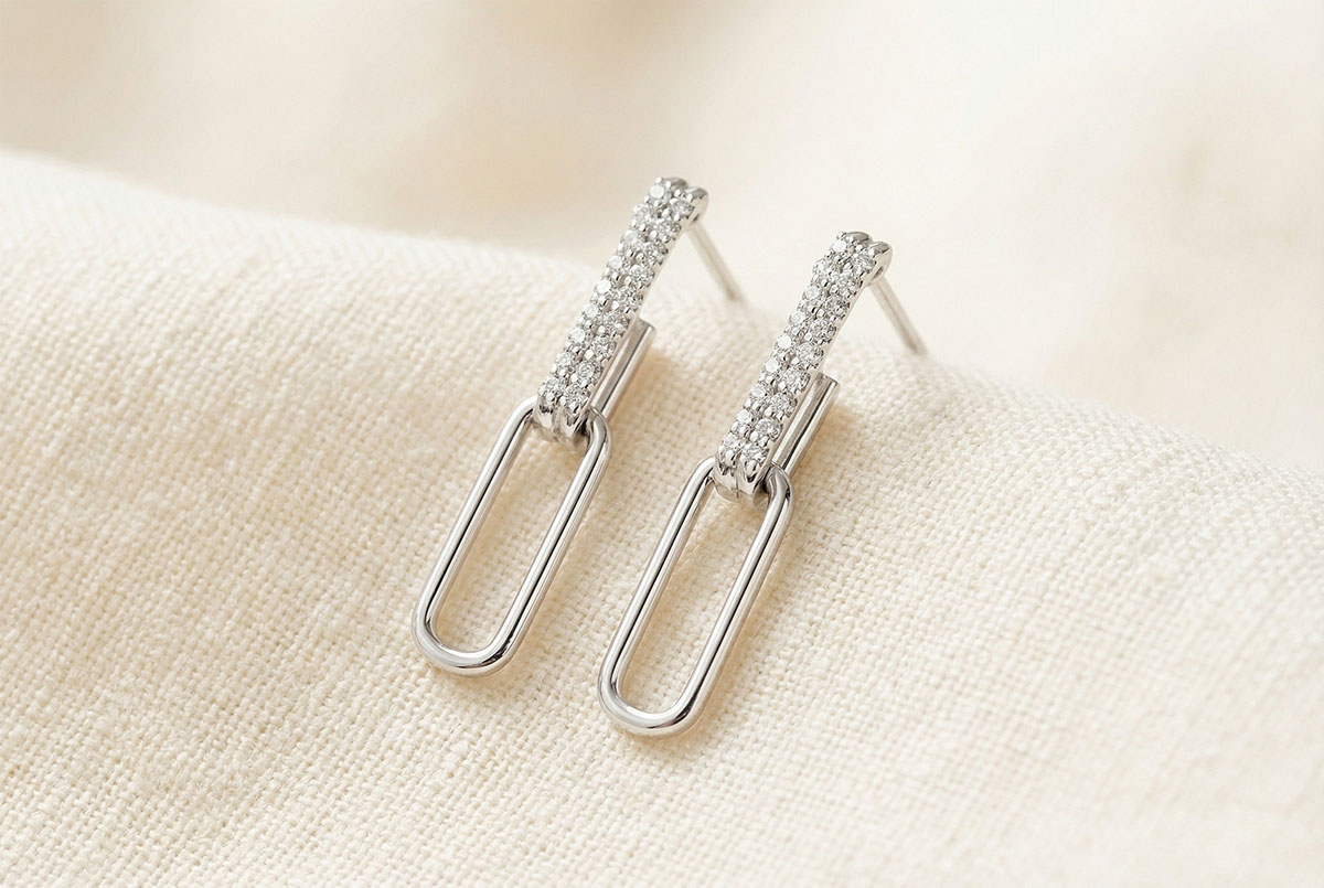 MIRADA DE ORIENTE N.º 3Pendientes - Oro blanco 18 quilates - Diamante ID : 5451