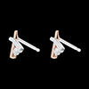 Una cruz preciosa de Oro Blanco y Oro Rosa alberga en su corazón un diamante en cada pendiente.