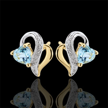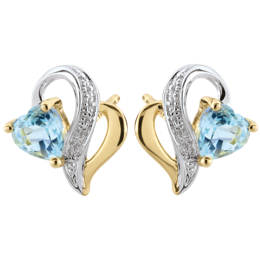 AVES DEL PARAíSO N.º 28Pendientes cortos - Oro blanco y Oro amarillo 9 quilates - Topacio azul ID : 2449 4.9