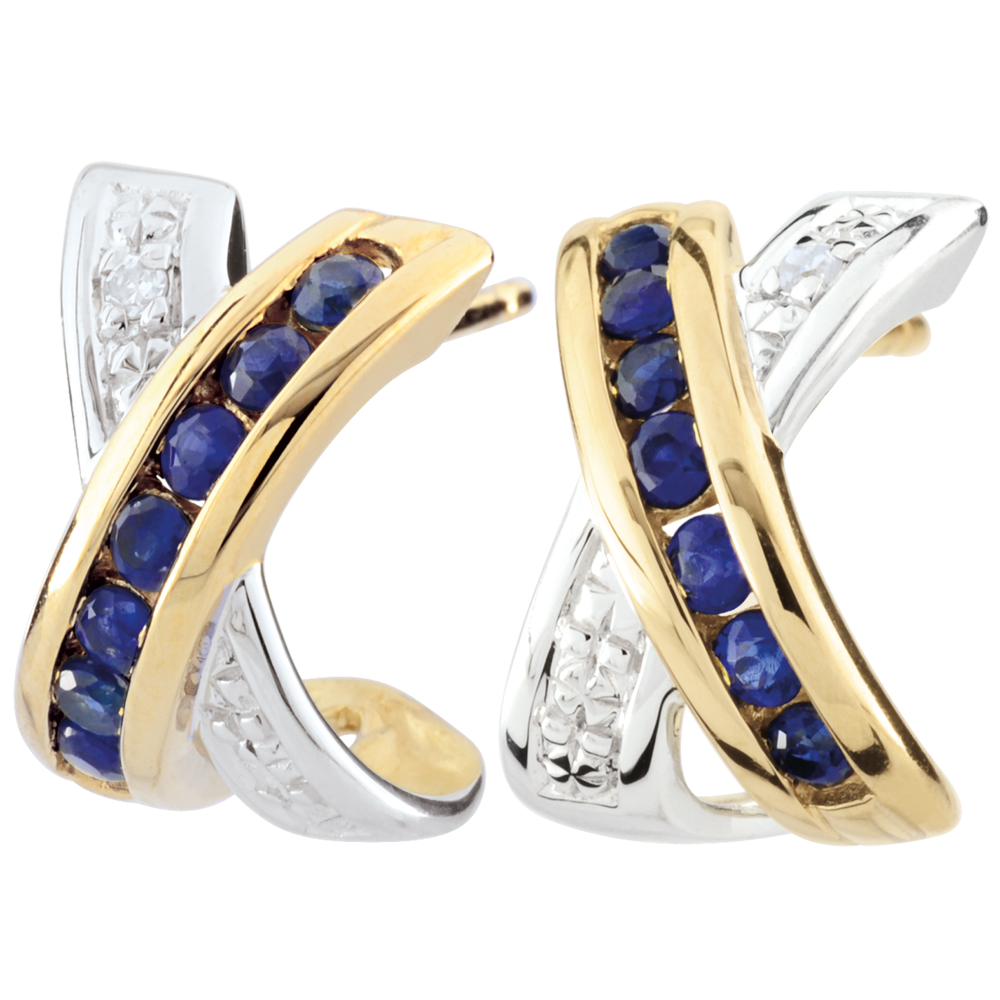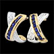 Una cruz de oro bicolor incrustada de zafiros y diamantes se encurva para formra una semi criolla.