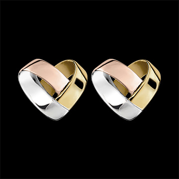 El corazón, ícono de la joyería, revisitada por Edenly en una versión origami donde los 3 oros se unen con originalidad y elegancia. Un par de pendientes pulga, delicados y absolutamente femeninos.