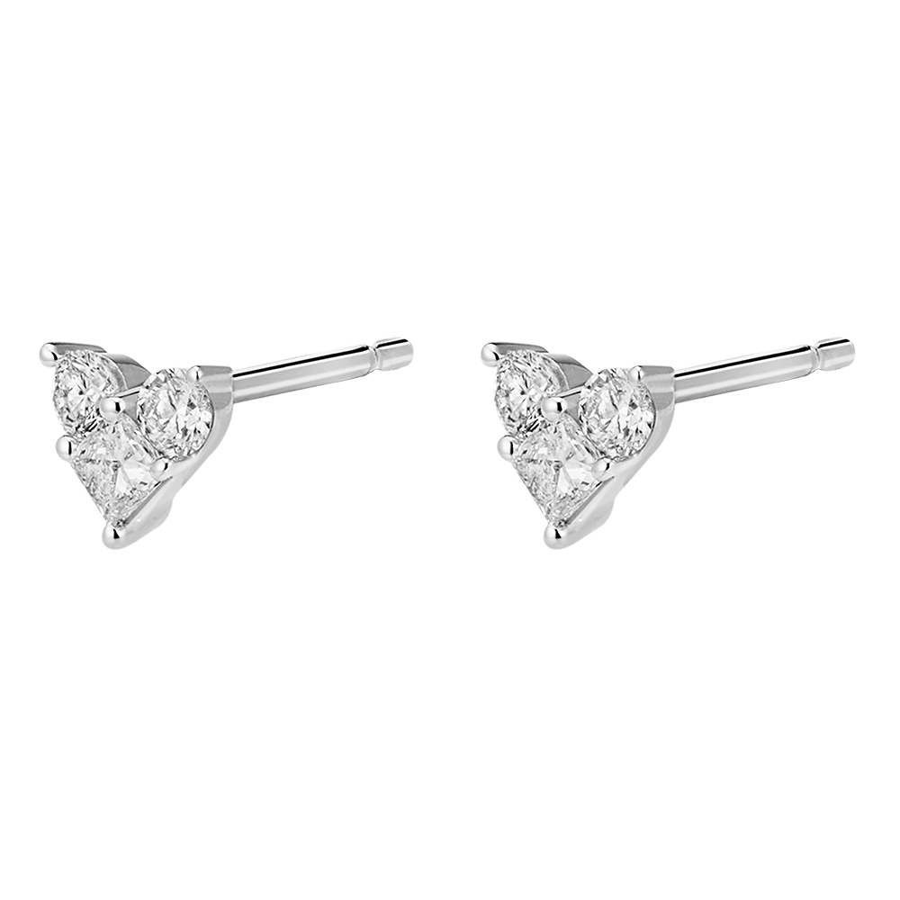 PRECIOSO SECRETO N.º 17Pendientes cortos Corazón - Oro blanco 18 quilates - Conjunto de diamantes naturales ID : 5389