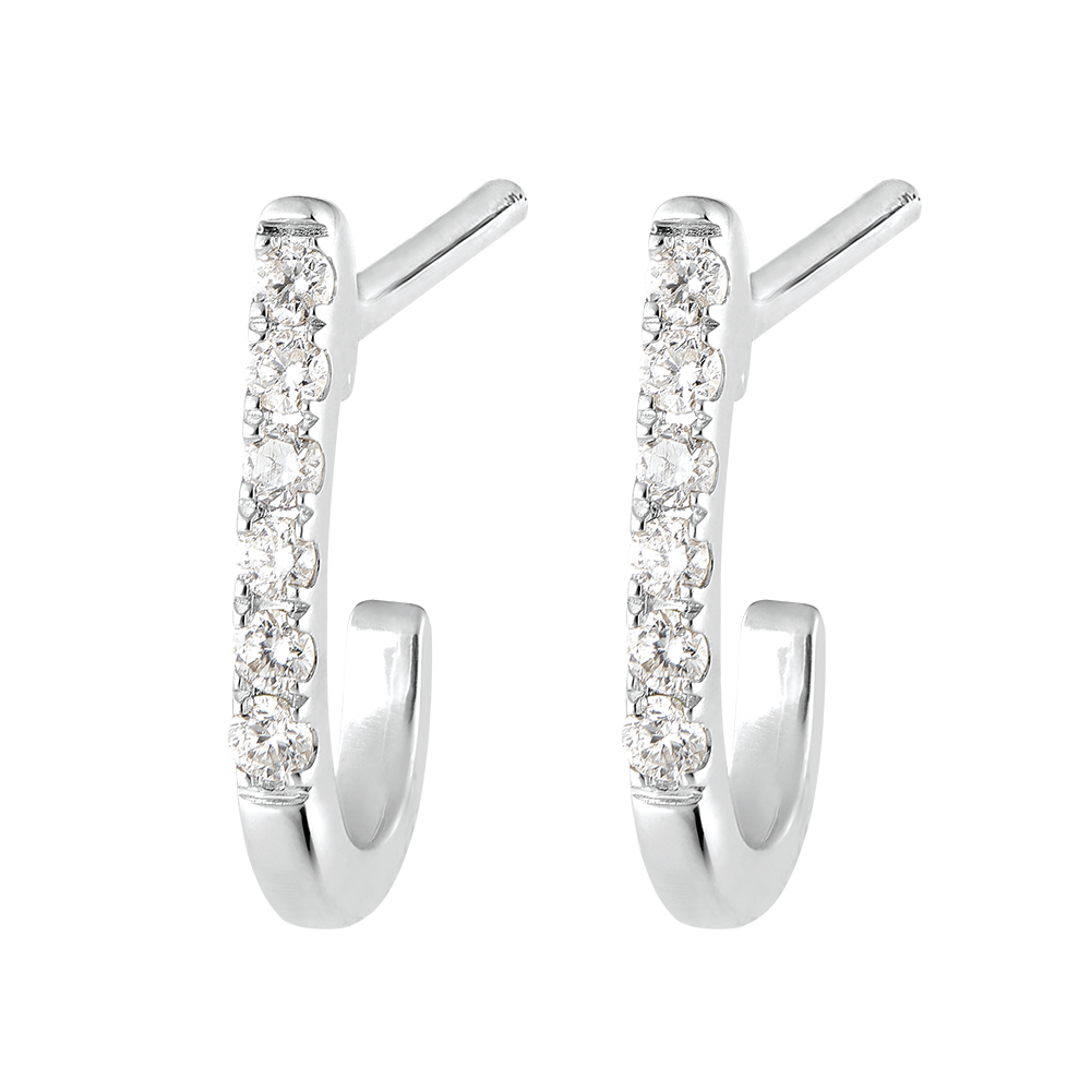 Hermosos semicriollos de oro blanco cuya delicada cubierta de diamantes realza las orejas.