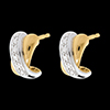 Un tándem medias lunas de oro color amarillo y oro blanco solado diamantes para un par redondo y refinado.