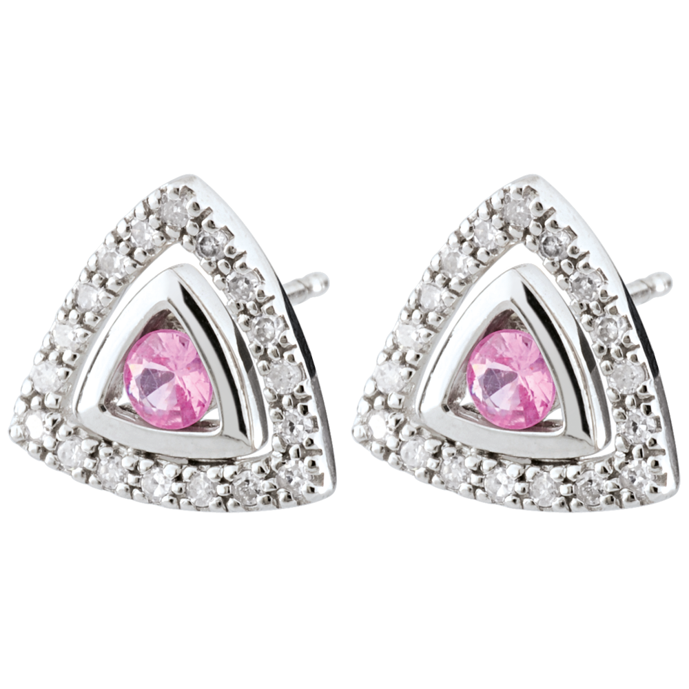 AVES DEL PARAíSO N.º 13Pendientes cortos - Oro blanco 9 quilates - Zafiro rosa ID : 2347