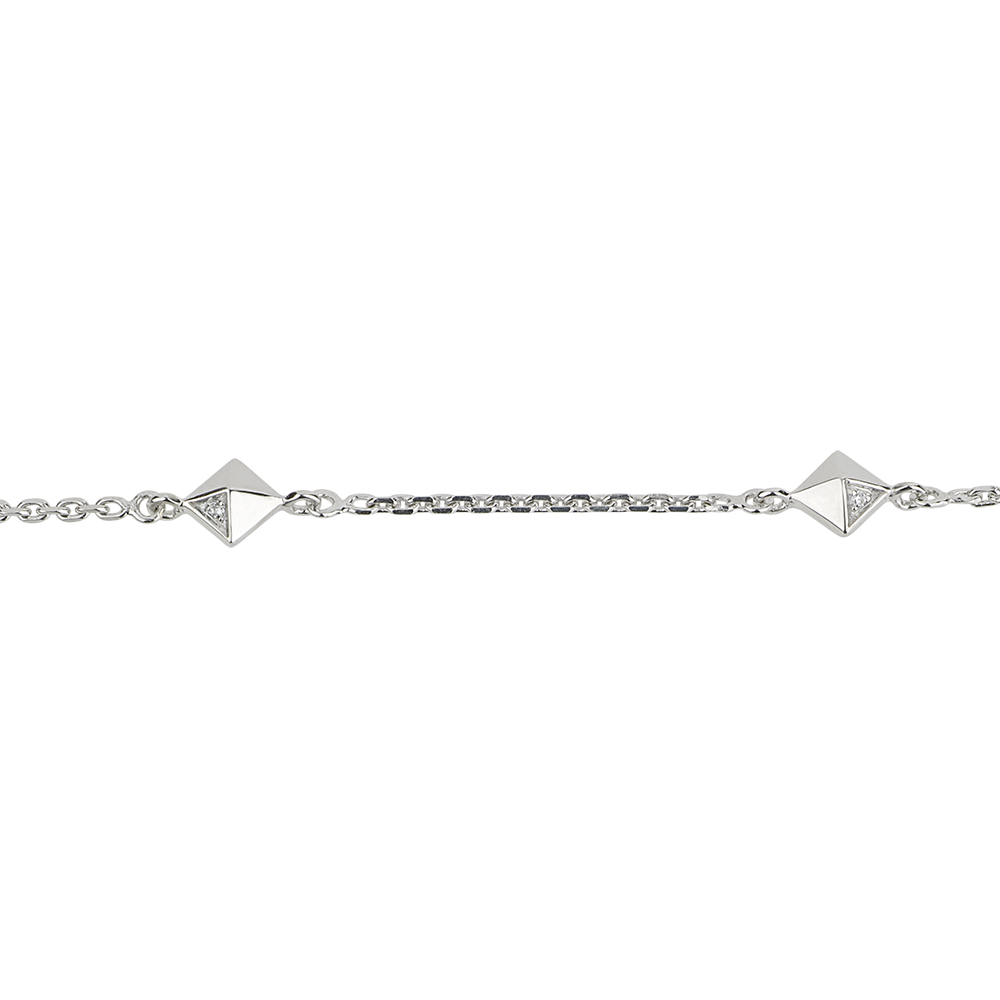 Estas preciosas pirámides están inspiradas en la forma de los diamantes en bruto, en una de sus facetas podemos hallar algunos diamantes. Se trata de una creación elegante y moderna.