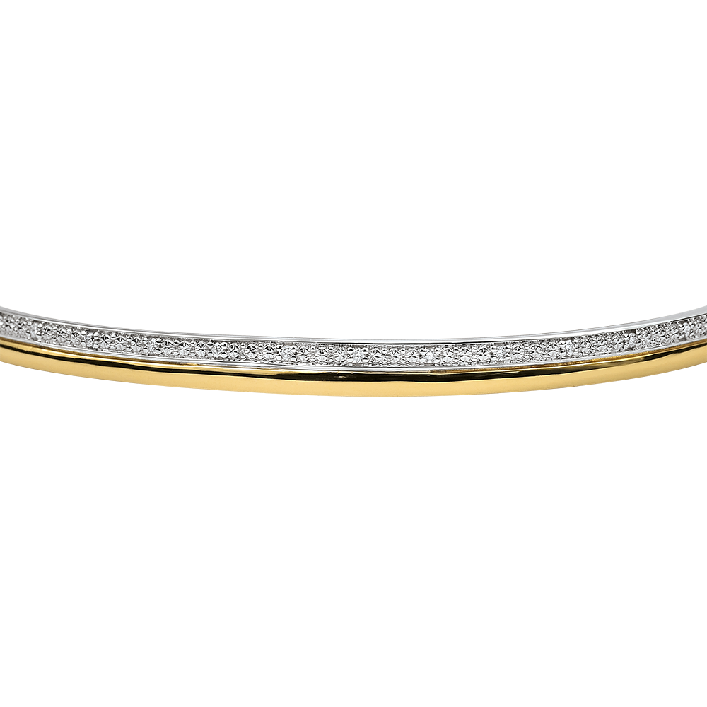 Una pulsera elegante y femenina que alía a la perfección el oro amarillo y blanco, alianza resaltada con un maravilloso brillo de diamantes.