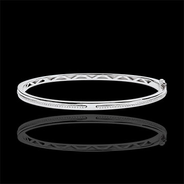 Dos brazos de diamantes se unen como una promesa de eternidad en este pulsera junco de oro blanco.