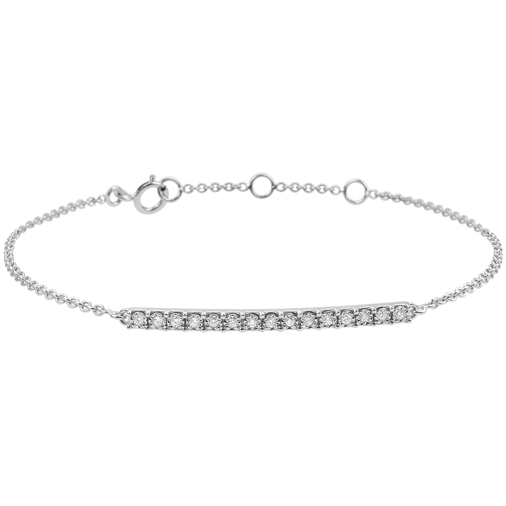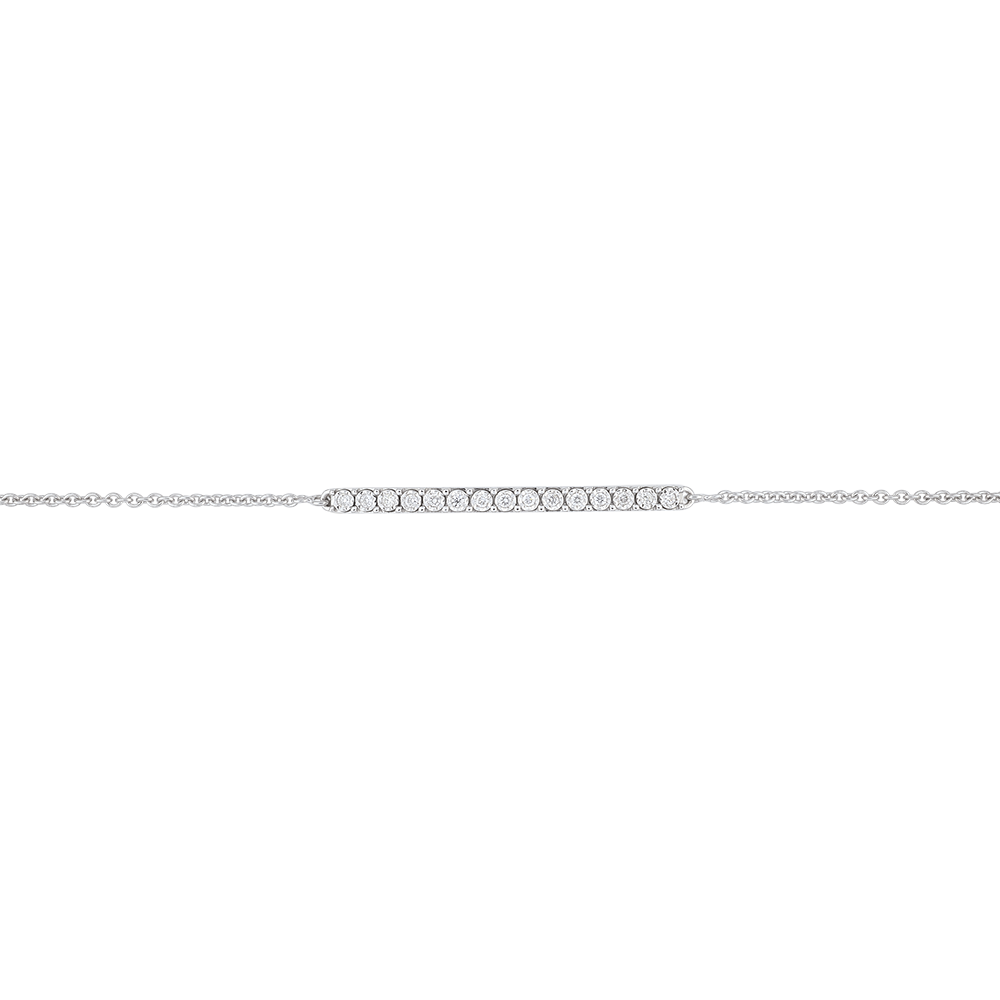 Un gran pavimento de 15 diamantes rodeados de oro tallado que confieren a esta pulsera de cadena de oro blanco un brillo máximo.Pulsera con longitud ajustable: 18cm, 17cm, 16cm.Motivo de 30 mm ancho y 2 mm de largo.