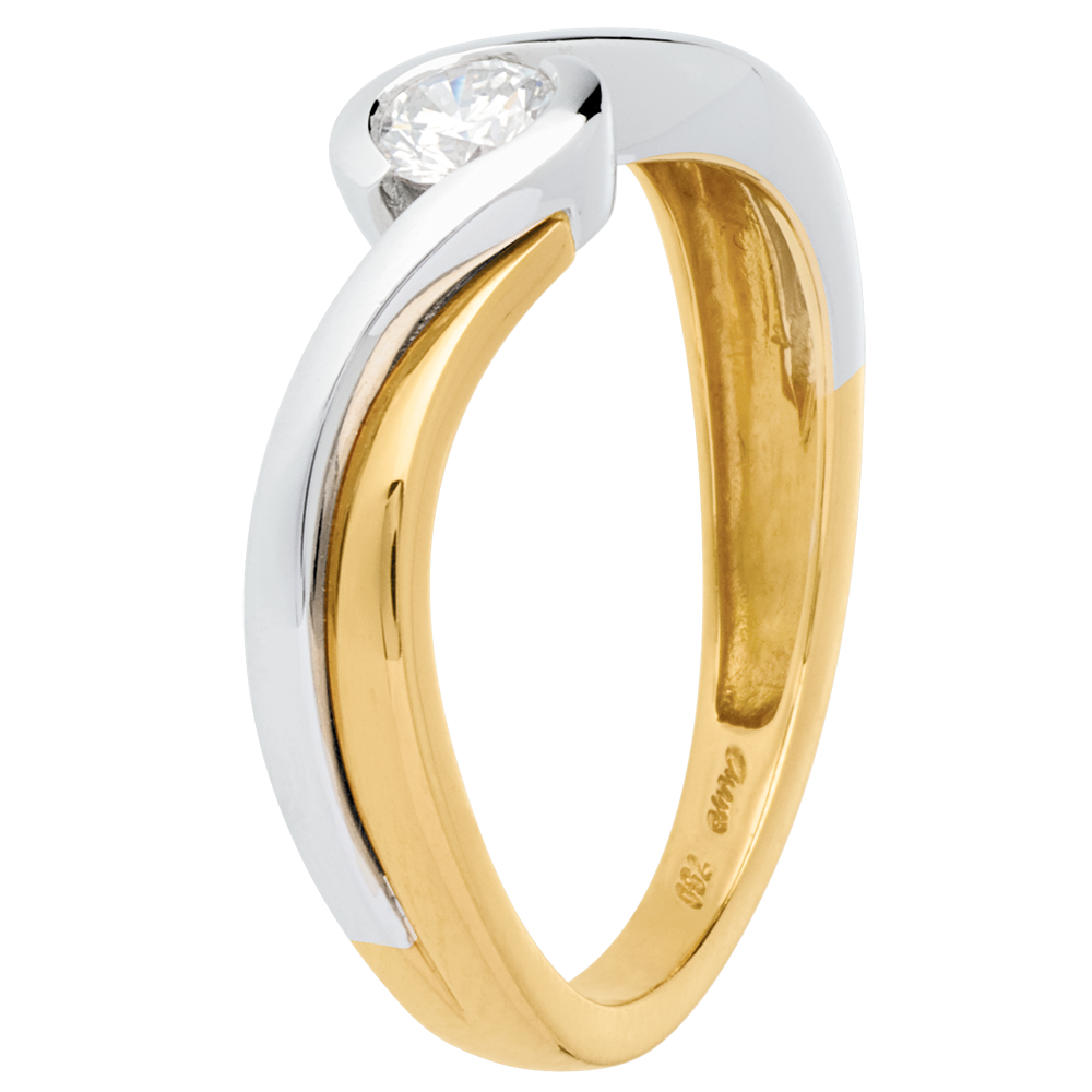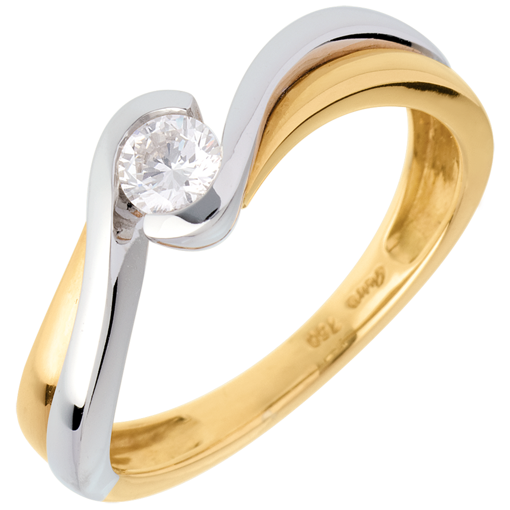 Solitario Nido Precioso - Acuario - oro amarillo y oro blanco 18 quilates - diamante 0.21 quilates