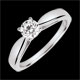 La delicadeza de un anillo vástago viselado de oro blanco, coronado con un diamante engarzado.