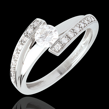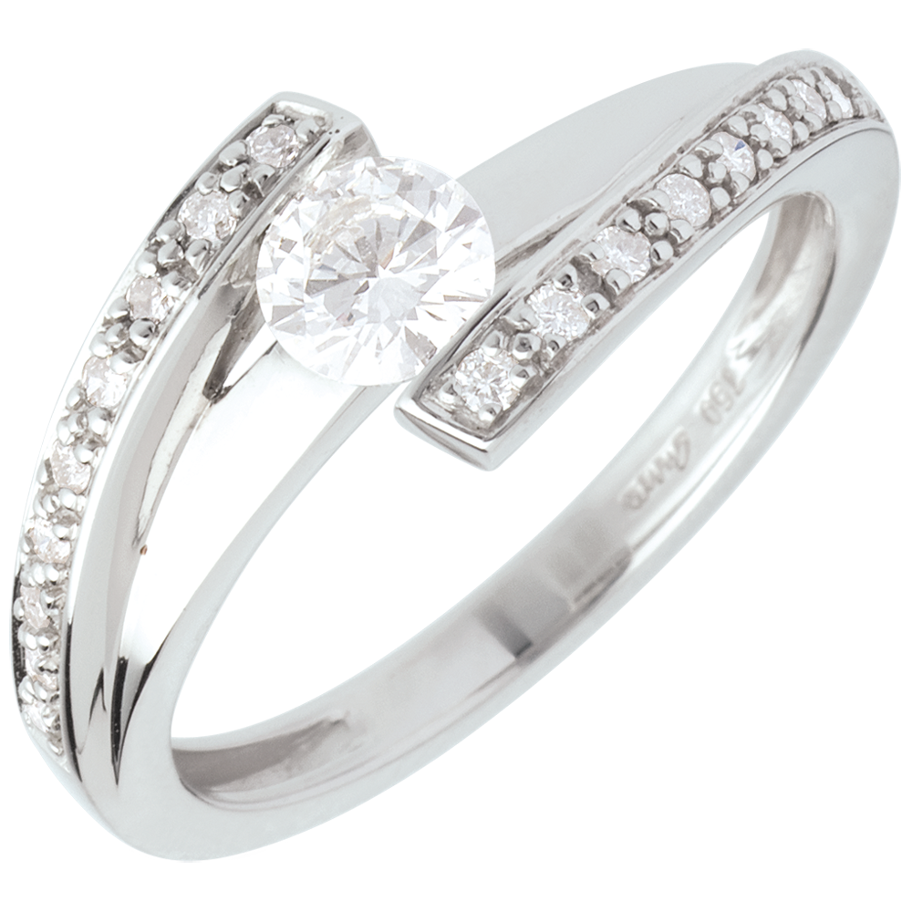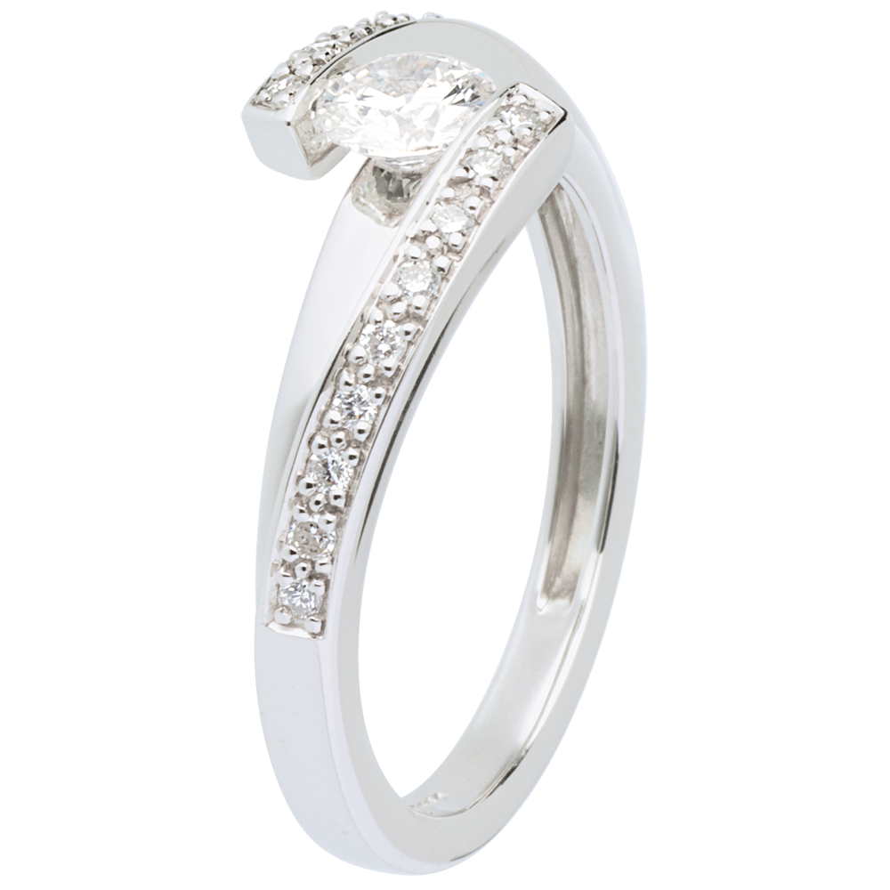 19 diamantes: 0. 51 quilates de los cuales el Diamante central: 0. 37 quilates