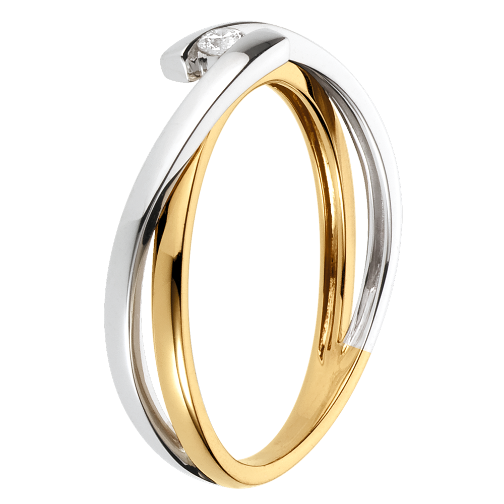 Solitario Plutón - oro amarillo y oro blanco 18 quilates - diamante 0,04