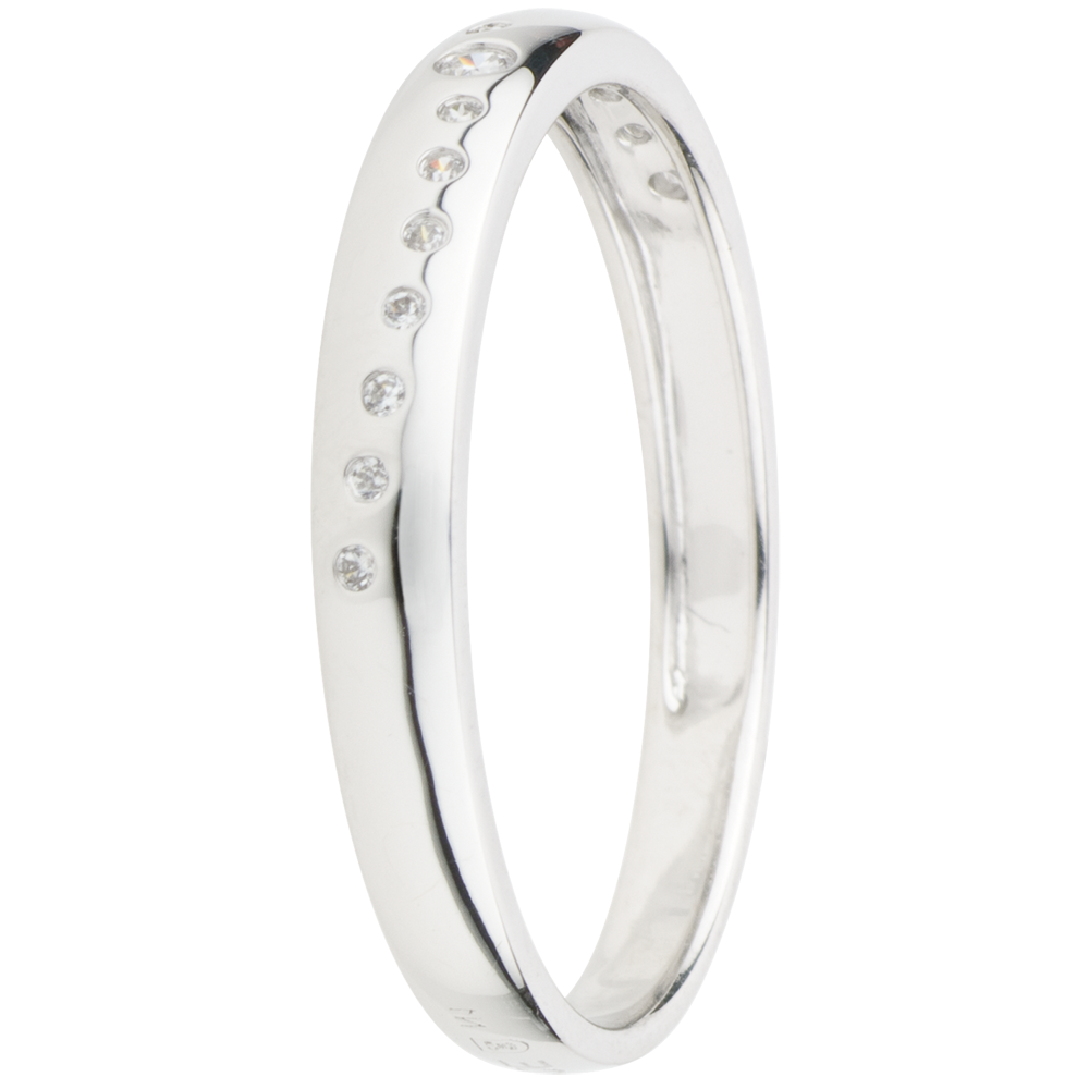 15 diamantes: 0.07 quilates - Oro blanco (18 quilates= 750/-): 1.9 g.
