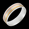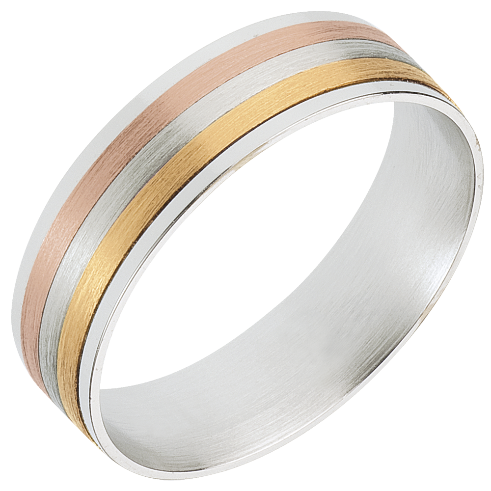 Un anillo sobrio y original que asocia con estilo el oro amarillo, el oro rosa, y el oro blanco cepillado.